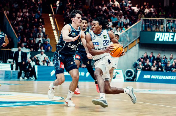 Körbe über Körbe fielen beim Topspiel der HAKRO Merlins Crailsheim am Samstagabend. Mit den Eisbären Bremerhaven gastierte eins der Topteams der Liga in der Stierkampfarena. Mit 103:81 setzten